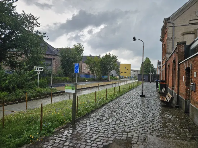 Gezien vanaf de andere zijde van het kopperron, de oude spoorwegbedding waar er ook deels een fietspad is aangelegd sinds kort.