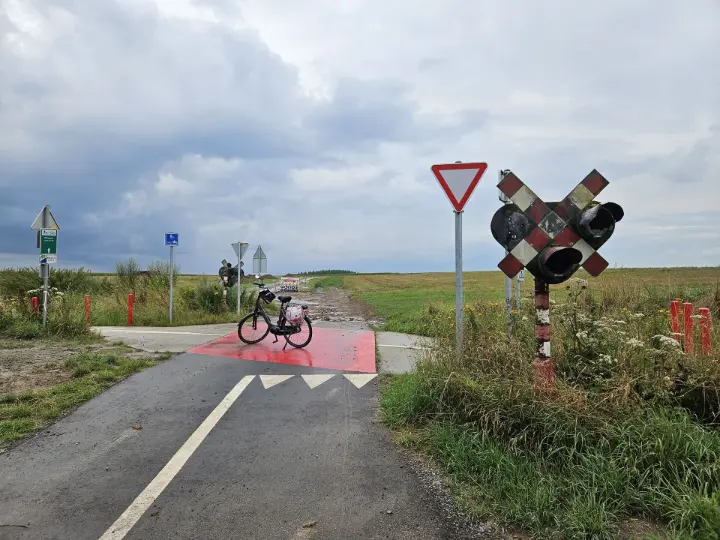 Een van de oude overwegen op L86, met nog het typische wachtershuisje op de linkerzijde
