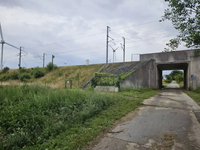 In Tourpes rijd je onder de huidige spoorlijn HSL1 die Brussel met Parijs verbind.