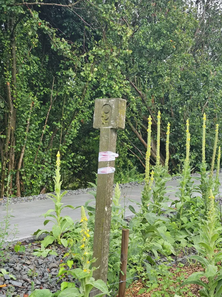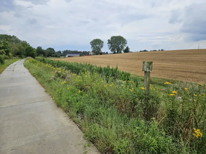 Een prachtig uitzicht vanop de oude spoorwegbedding, duidelijk zichtbaar aan de hectometerpaal