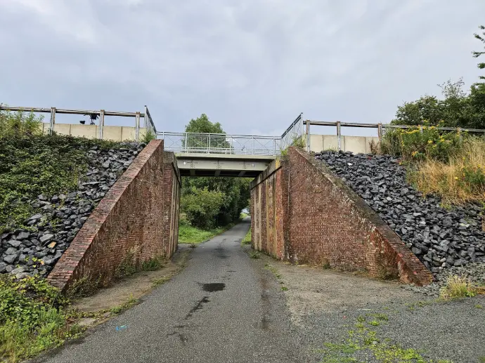 Langs de kanten vind je nog de overblijfselen zoals de ballast, hectometerpalen en kunstwerken (de bruggen)
