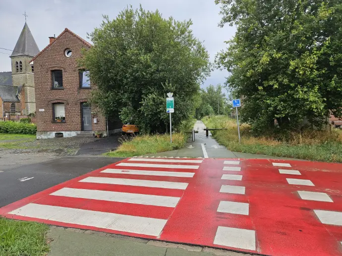 Helaas kent deze oudes spoorwegroute gedeeltelijk een RaVel, enkel in Wallonie