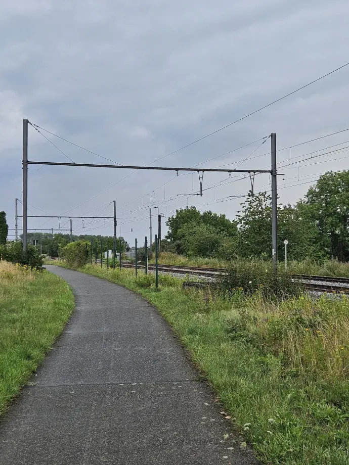 Langs de grote steenweg rij je wel de hele tijd paralel met de oude spoorlijn.