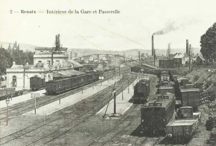 De perrons van Blaton, met op de achtergrond de gebouwen van de vroegere dienst Baan van NMBS.